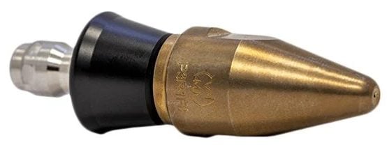 The Predator Invader Nozzle has 6 rear jets and one front jet. It is a good general drain cleaning nozzle with the power to penetrate a choke and blast out debris.