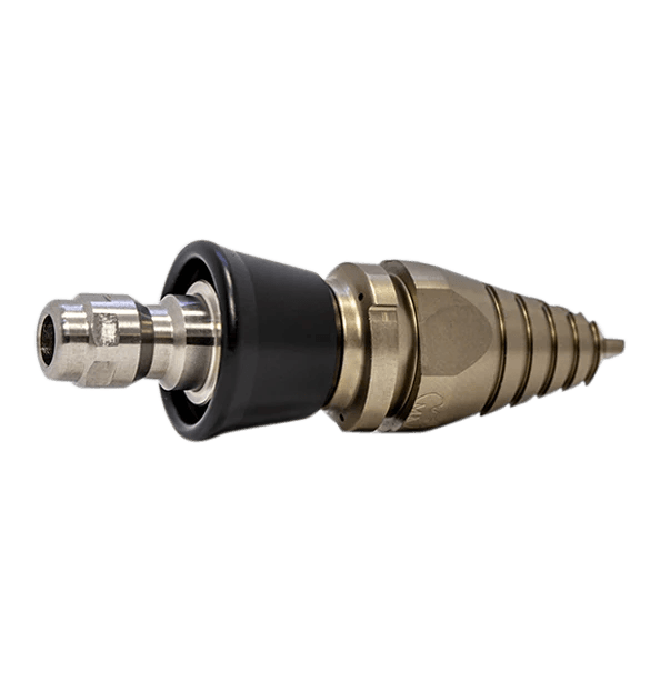 The Predator Side Cutter Screwdriver Nozzle was developed by using the latest CAD drawings and a 4 dimensional CNC machine to give you a remarkable nozzle for penetrating the toughest blockages. This nozzle cuts from the blade at the front with a front penetrating jet, 2 side blades for ripping through roots and debris, rear reversing blades and 3 rear jets for propulsion and and washing the pipe clean.